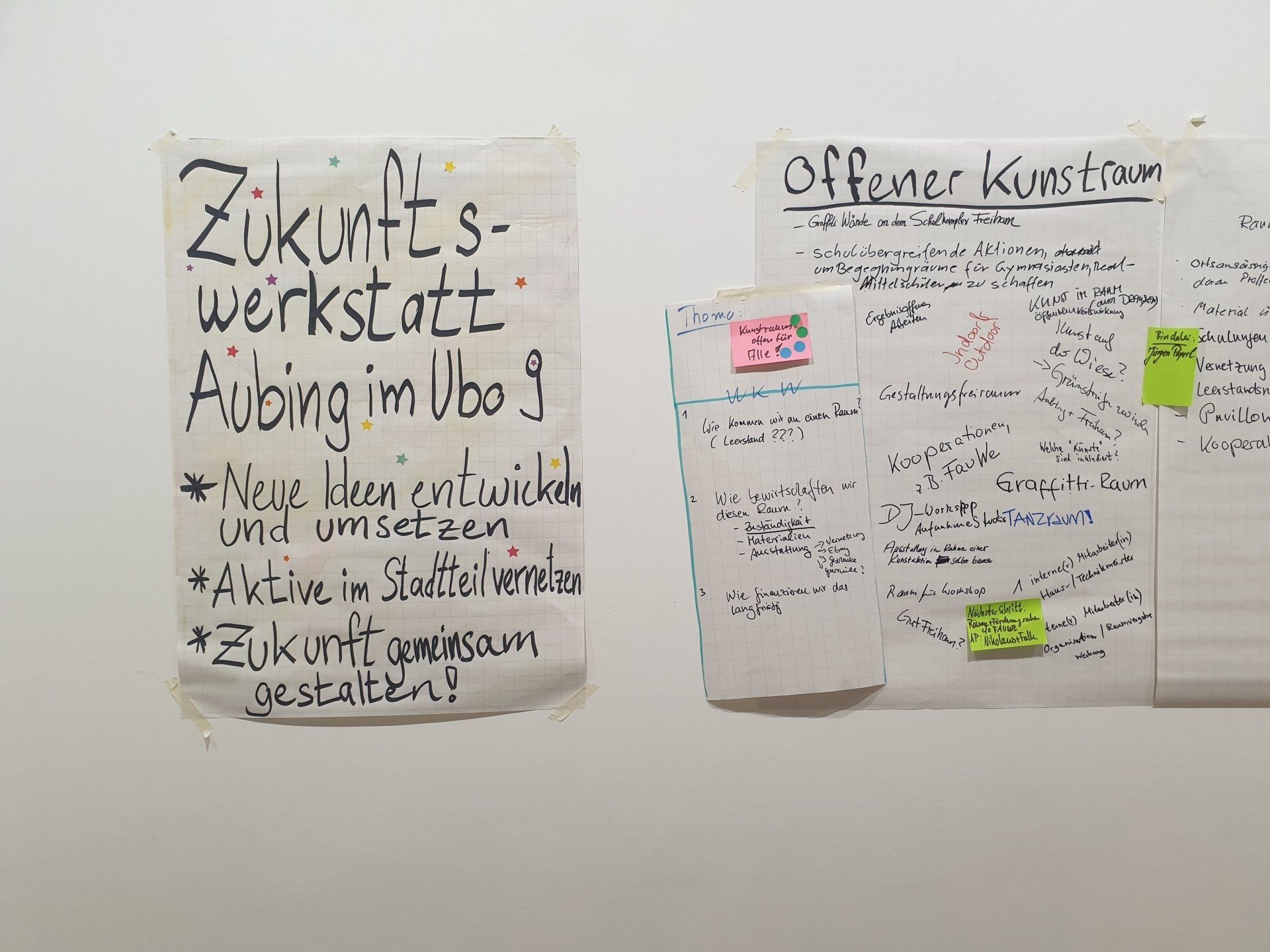Lasst uns über Kultur reden und Kultur gestalten. In Aubing, Neuaubing und am Westkreuz. Was fehlt im Viertel? Welche Ideen gibt es? Wo braucht es Unterstützung? Ihr könnt eure Ideen hier auf der grünen Tafel eintragen. Rechts oben auf den kleinen Pfeil im Quadrat klicken, dann wird das grüne "padlet" groß. Unten rechts findet ihr einen pinkfarbenen Kreis mit Kreuz. Entweder darauf klicken oder einfach ein Doppelklick mit der Maus auf die grüne Tafel. dann öffnet sich ein Textfeld und ihr könnt reinschreiben. Das ist dann sofort öffentlich für alle sichtbar.