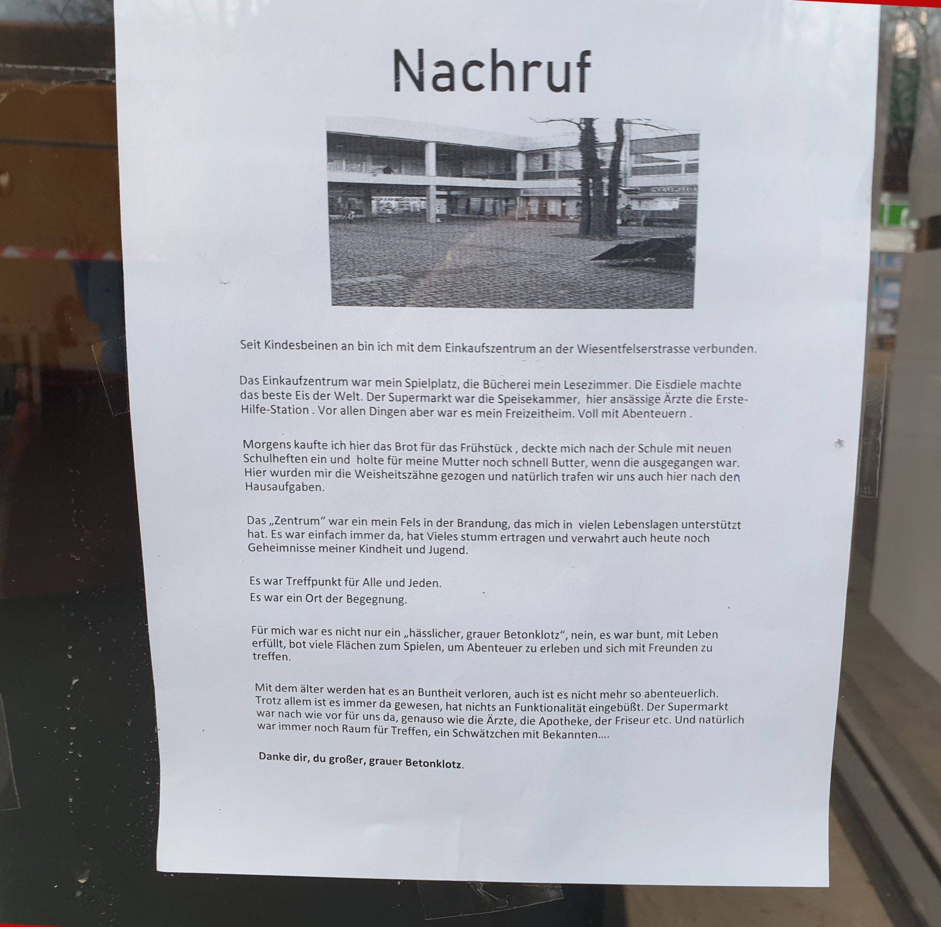 Das Ladenzentrum Neuaubing wird bald abgerissen. Die Bewohner:innen des Viertels haben das Ladenzentrum über Jahrzehnte mit Leben und Lebensgeschichten gefüllt. Wir wollen diese Erinnerungen bewahren und erhalten. Die Menschen vor Ort sollen sich beteiligen mit ihren Geschichten. In Zeiten des Umbruchs (Abriss des Ladenzentrums und Neubau) und in Zeiten pandemiebedingter Distanz sollen Zusammengehörigkeit, Gemeinschaft und Zuversicht gestärkt werden. Ein Projekt von SOS Kinderdorf e.V. in Kooperation mit Kultur Street Work und dem Fotokünstler Oliver Sold. Finanziert aus dem Verfügungsfond der Städtebauförderung.