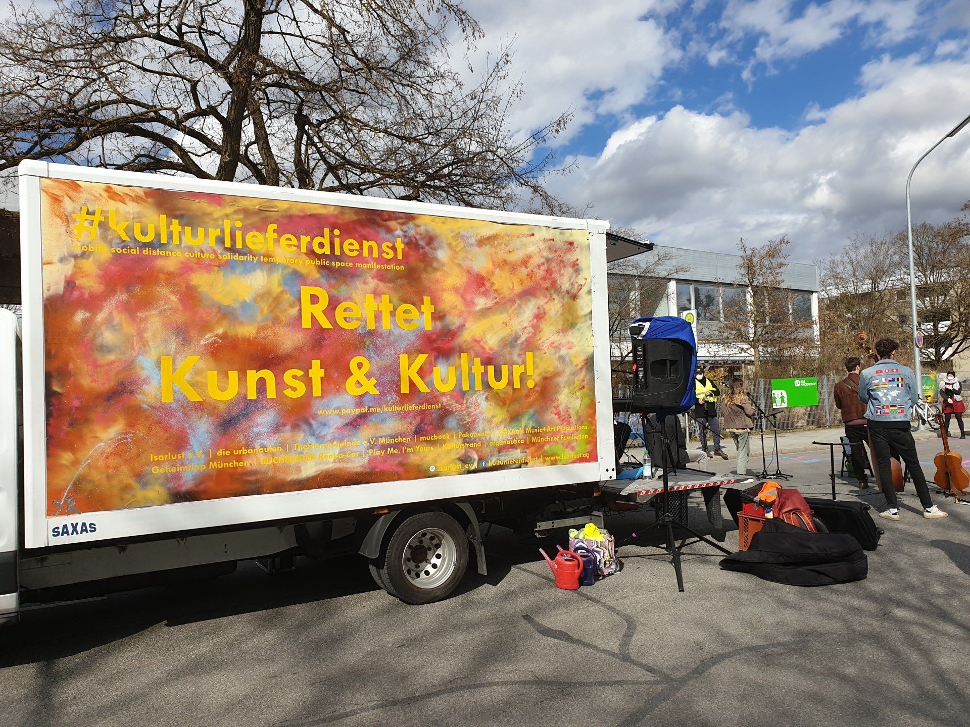 Im Moment ist´s still im öffentlichen Raum. Fast immer. Am Samstag Nachmittag, 27. März verzauberte die Musik von der Band "Peter and the lost boys" für eine Stunde die Wiesentfelser Straße in Neuaubing. Wie kommt Musik in Pandemiezeiten auf die Straße, wo doch Veranstaltungen nicht stattfinden dürfen? Der #Kulturlieferdienst München ist eine Kultur-Kundgebung. Er macht auf die Wichtigkeit von Kunst und Kultur mit Künstler:innen aufmerksam. Als Versammlung beim Kreisverwaltungsreferat angemeldet, mit Abstand, Maskenpflicht und Polizeisperre, kommt Kultur für eine Stunde auf die Straße. Viermal war der Kulturlieferdienst kürzlich in Aubing, unterstützt von Kultur Street Work und dem Bezirksausschuss 22. Sind Sie selber Künstler und möchten eine Versammlung des #Kulturlieferdienstes begleiten? Möchten Sie eine Straße in Aubing vorschlagen, auf der eine Kultur-Kundgebung stattfinden soll? Melden Sie sich bitte bei Kultur Street Work oder direkt beim #Kulturlieferdienst